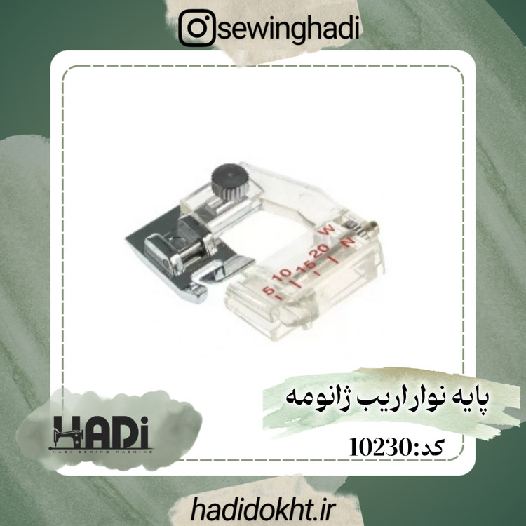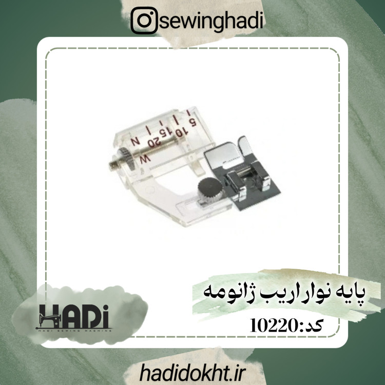 این پایه برای دوخت سایزهای مختلف نوار از 5 تا 20 میلی متر قابل تنظیم است.