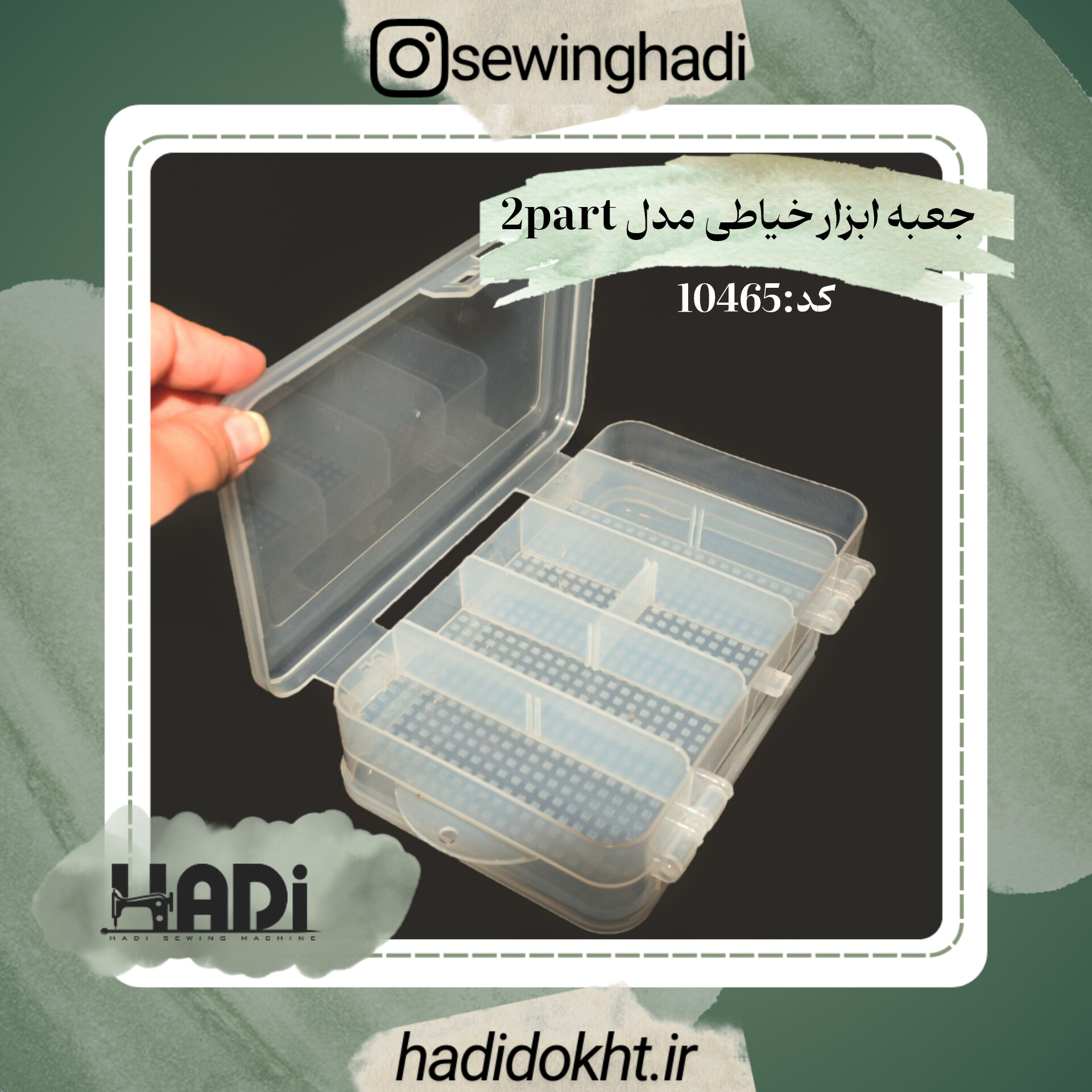 این محصول یک جعبه دوطرفه شفاف است که برای نظم کار خیاطان بسیار ضروری است. این جعبه مناسب قرار دادن سوزن،منجق،دکمه،پایه،ماسوره و ... میباشد